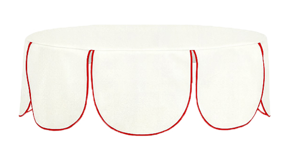 Коктейльный стол Twist circle с велюровым чехлом в форме цветочка с контрастной красной окантовкой.