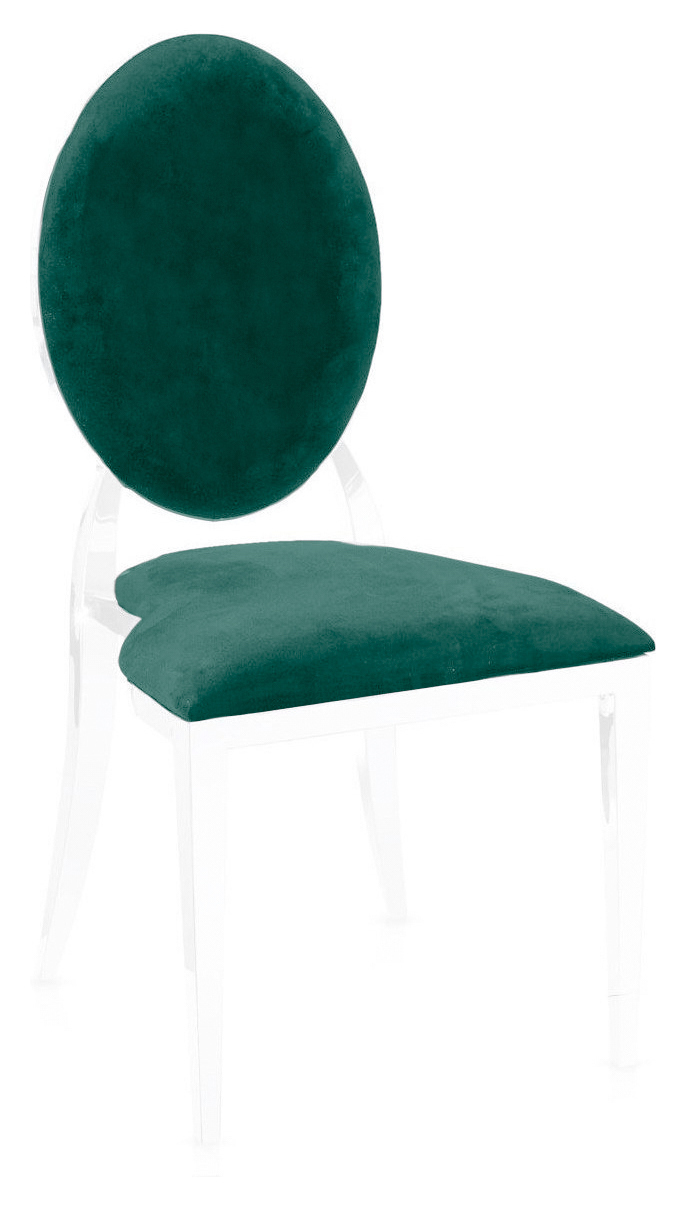 Классика вне времени - удобная и элегантная модель стула с металлическим каркасом серебряного цвета и текстильным покрытием из высококачественного бархата изумрудного оттенка, идеально сочетающегося по цвету и фактуре с коллекцией салфеток и скатертей.